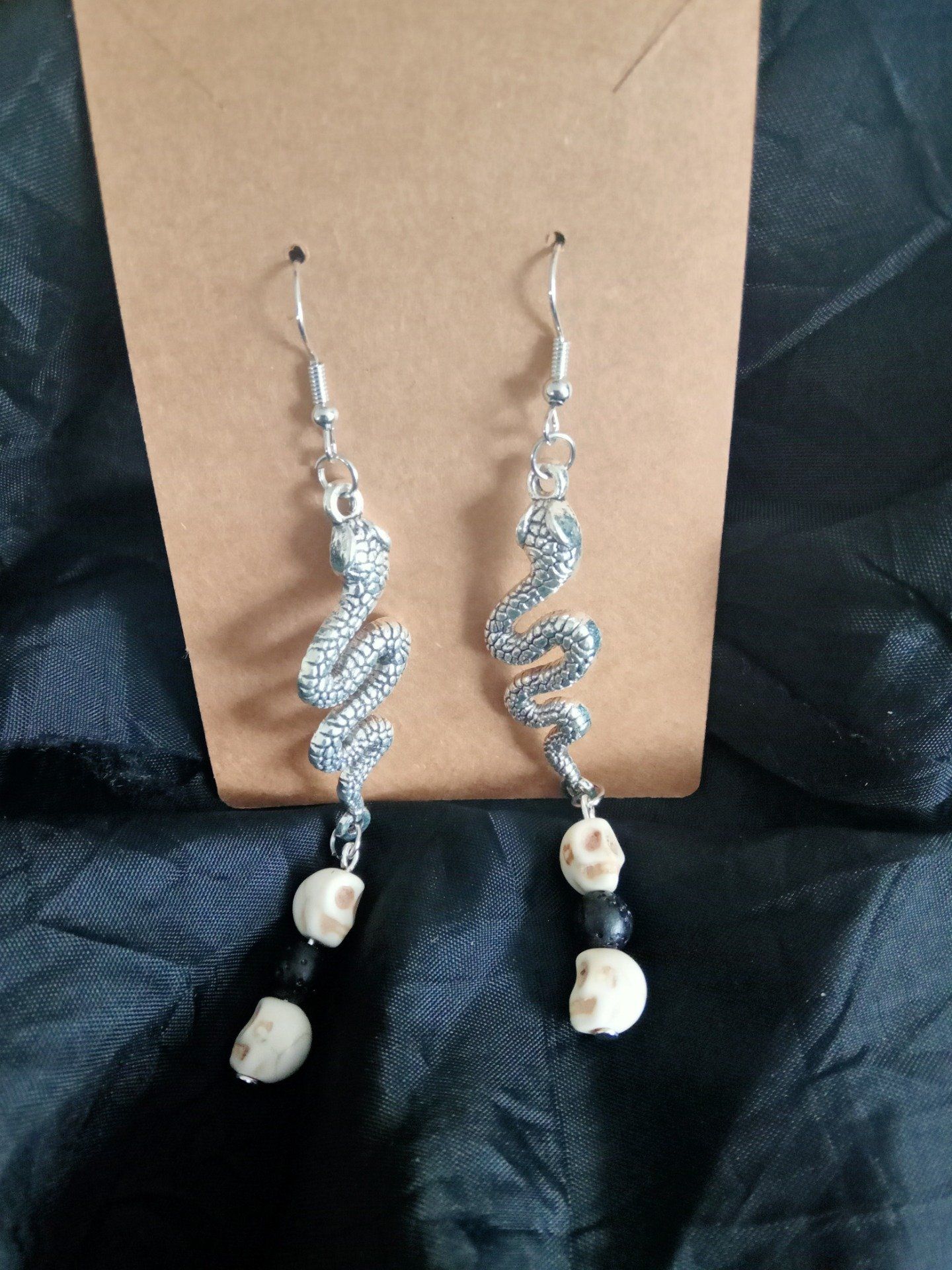 Boucles d'oreilles serpent crâne pierre de lave