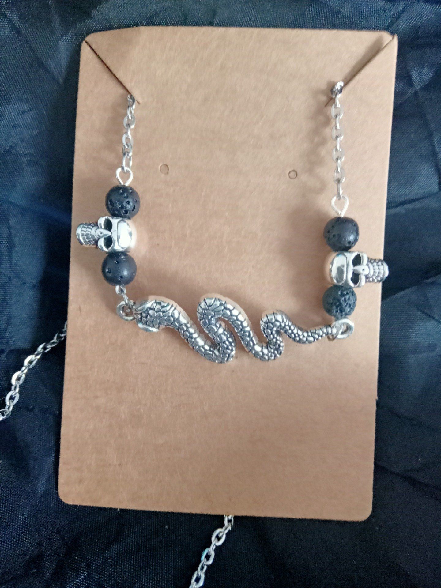 Collier serpent crâne pierre de lave